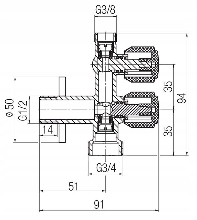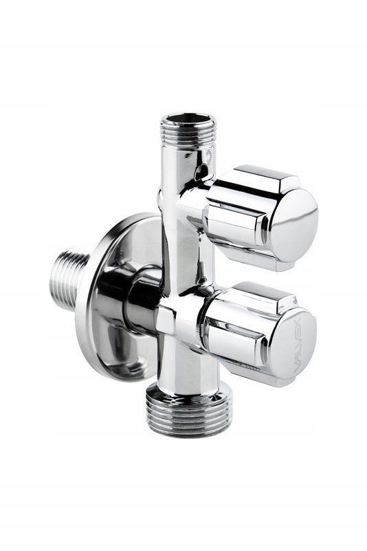 ZAWÓR KUREK KOMBI KOMBINOWANY KĄTOWY 1/2x3/8x3/4 DO BATERII PRALKI ZMYWARKI EKO DUO VALVEX Valvex Kurek kątowy Eko Duo chrom 1482090 Zawór Kombinowany