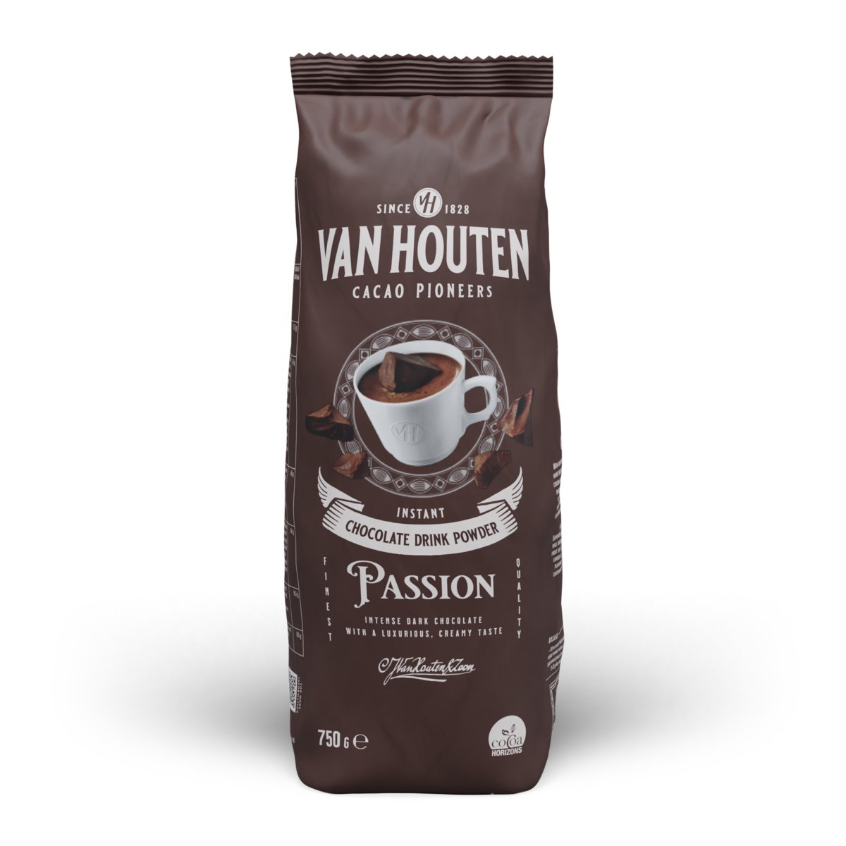 Van Houten Passion to wyjątkowa czekolada do picia na gorąco, produkowana na bazie najlepszego belgijskiego kakao. Ciemna, gęsta, intensywnie czekoladowa oraz bardzo prosta w przygotowaniu. Swoją gęstość oraz mocno czekoladowy smak zawdzięcza wysokiej zawartości naturalnego belgijskiego kakao (33%). Zaletą czekolady Van Houten Passion jest delikatna słodkość trafiająca w gusta nawet najbardziej wymagających smakoszy. Gęstość gorącej czekolady możemy regulować dodaniem większej gramatury, zachowując przy tym umiarkowaną, delikatną słodycz oraz intensywniejszy smak ciemnej, deserowej czekolady. Z jednego opakowania możemy uzyskać od 22 do 25 obfitych porcji. Idealny wybór dla właścicieli kawiarni, restauracji oraz domowych koneserów.