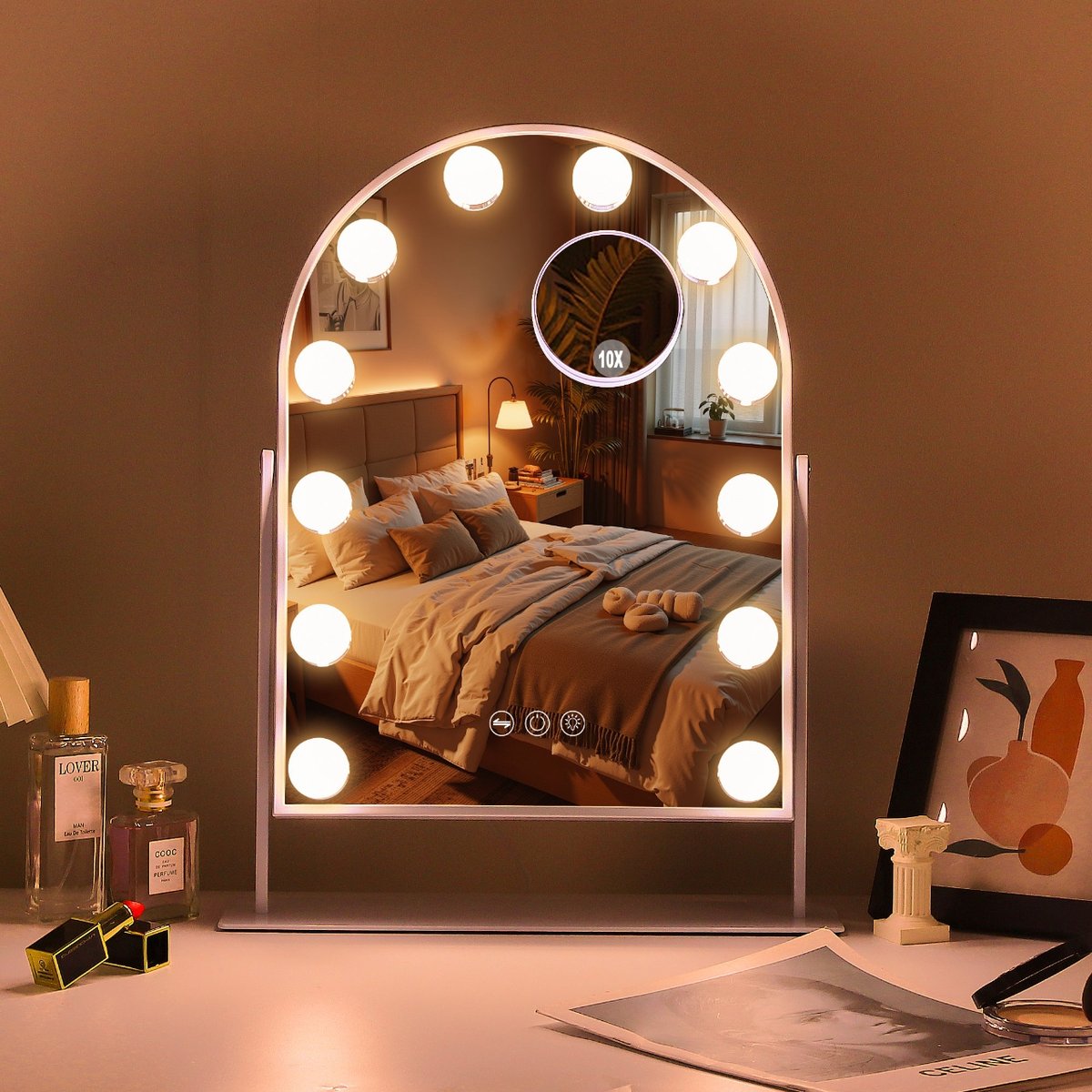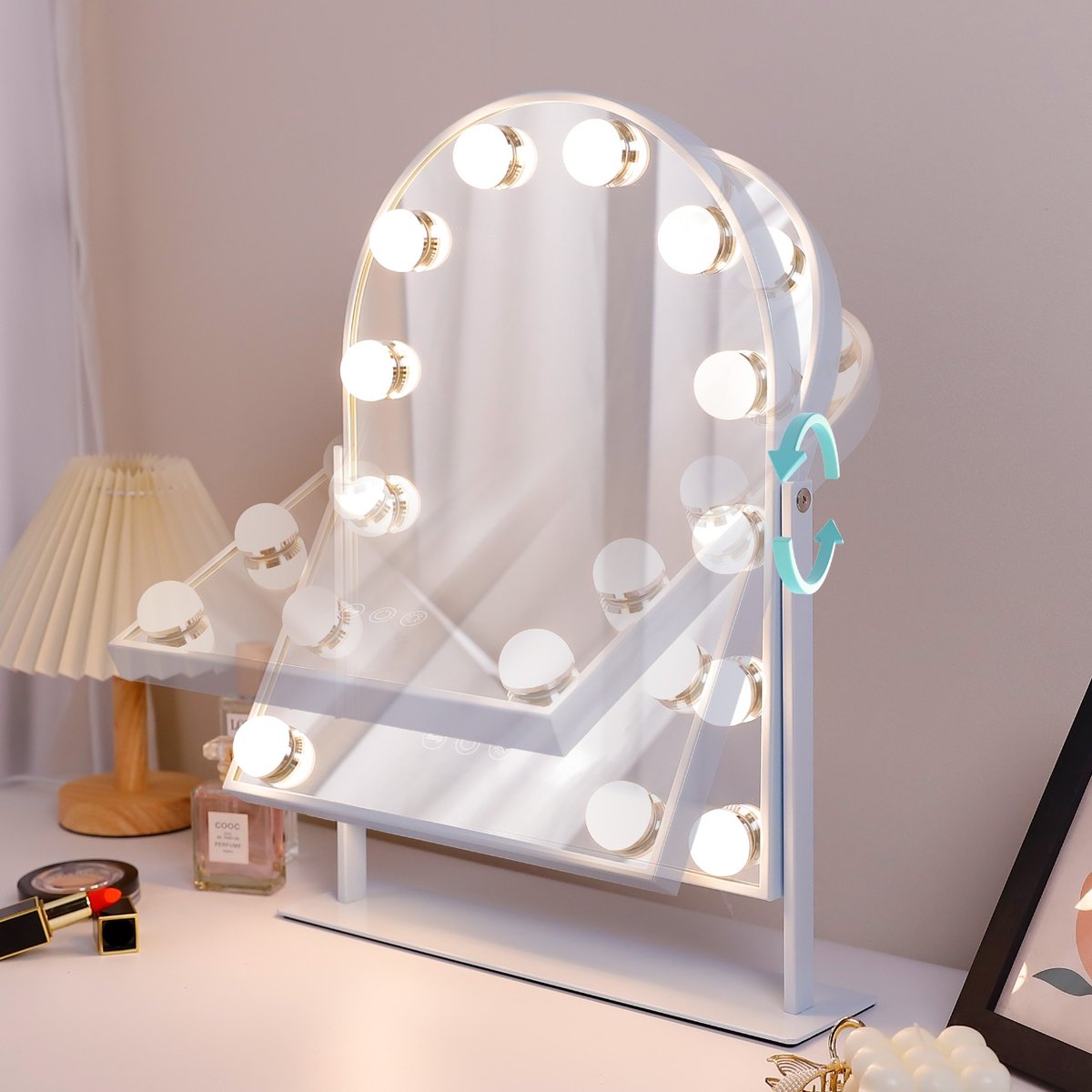 Elegancki łukowy designUnikalnie wygięty kształt nadaje lustru szlachetny wygląd, jednocześnie zapewniając szersze i bardziej immersyjne odbicie dla komfortowego makijażu.Obrot 360°W pełni obrotowy ...