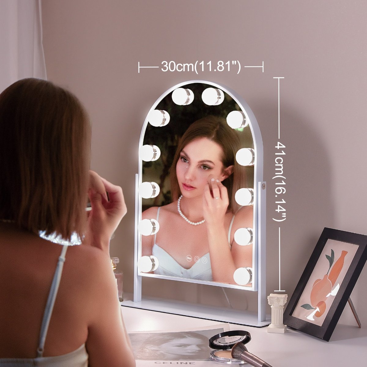 Właśnie zrecenzowałem VANITII Łukowe lustro do makijażu z białym oświetleniem LED 300 × 410 mm