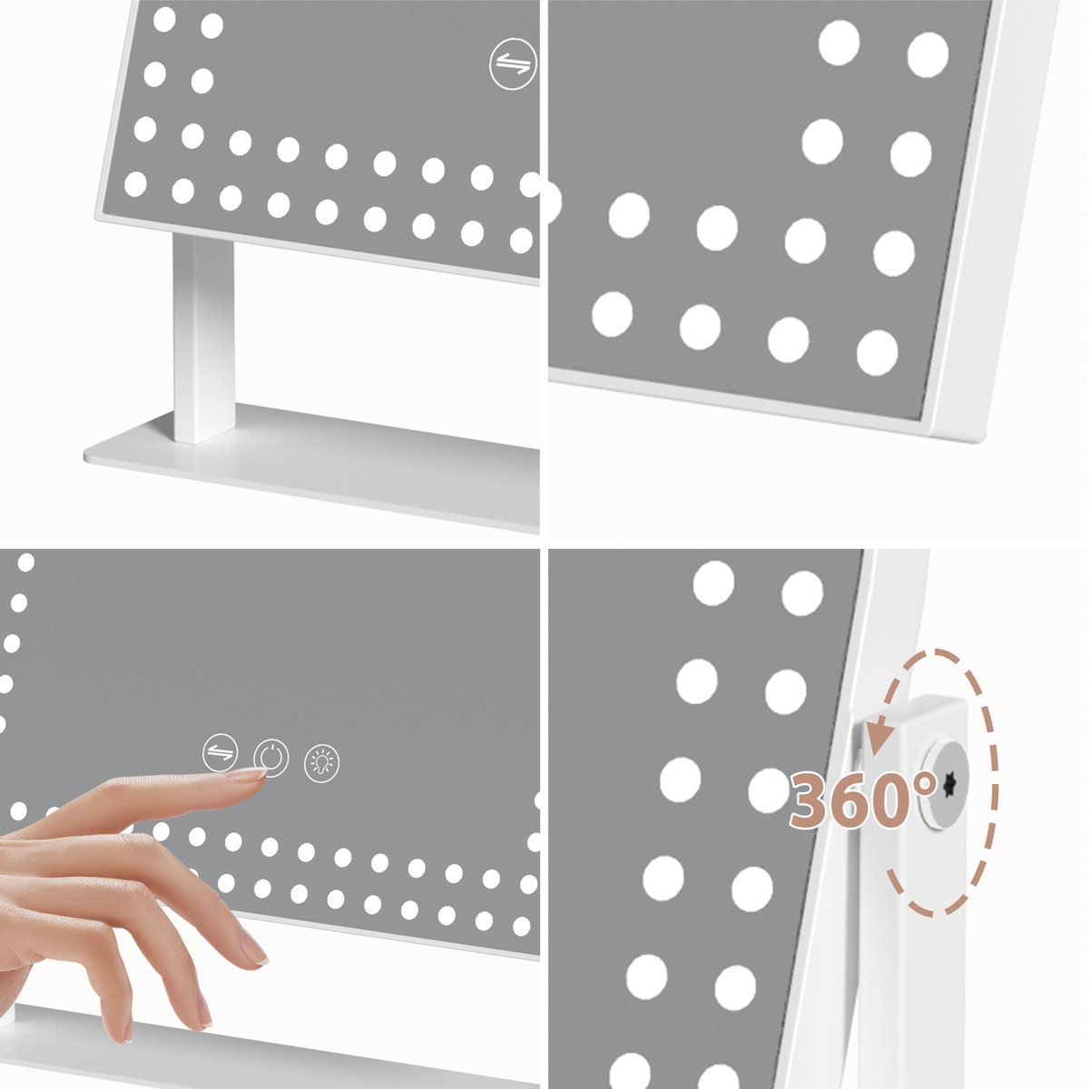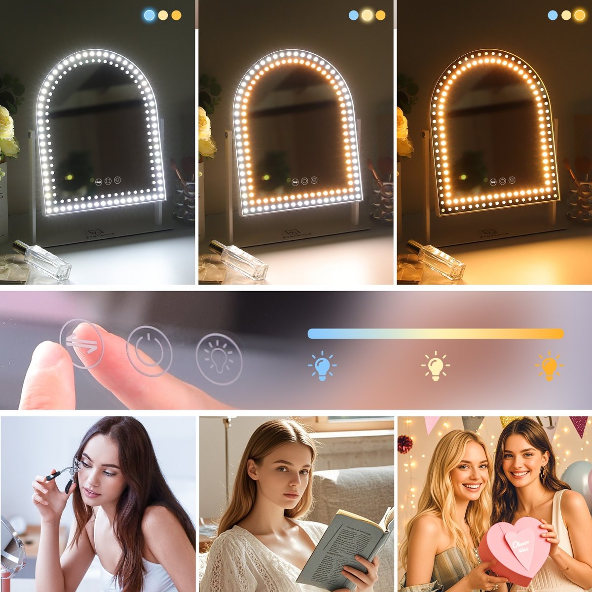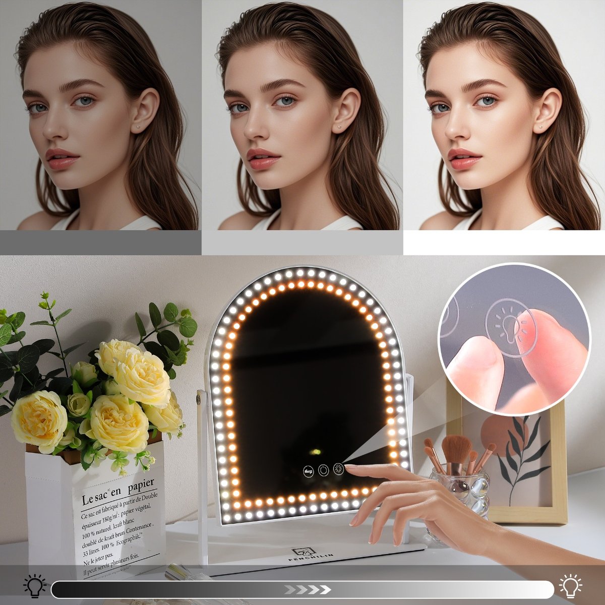Lustro z funkcją Bluetooth oferuje 3 tryby świetlne z możliwością ściemniania: światło dzienne, ciepłe i chłodne. Możesz je zmieniać w zależności od potrzeb makijażowych.