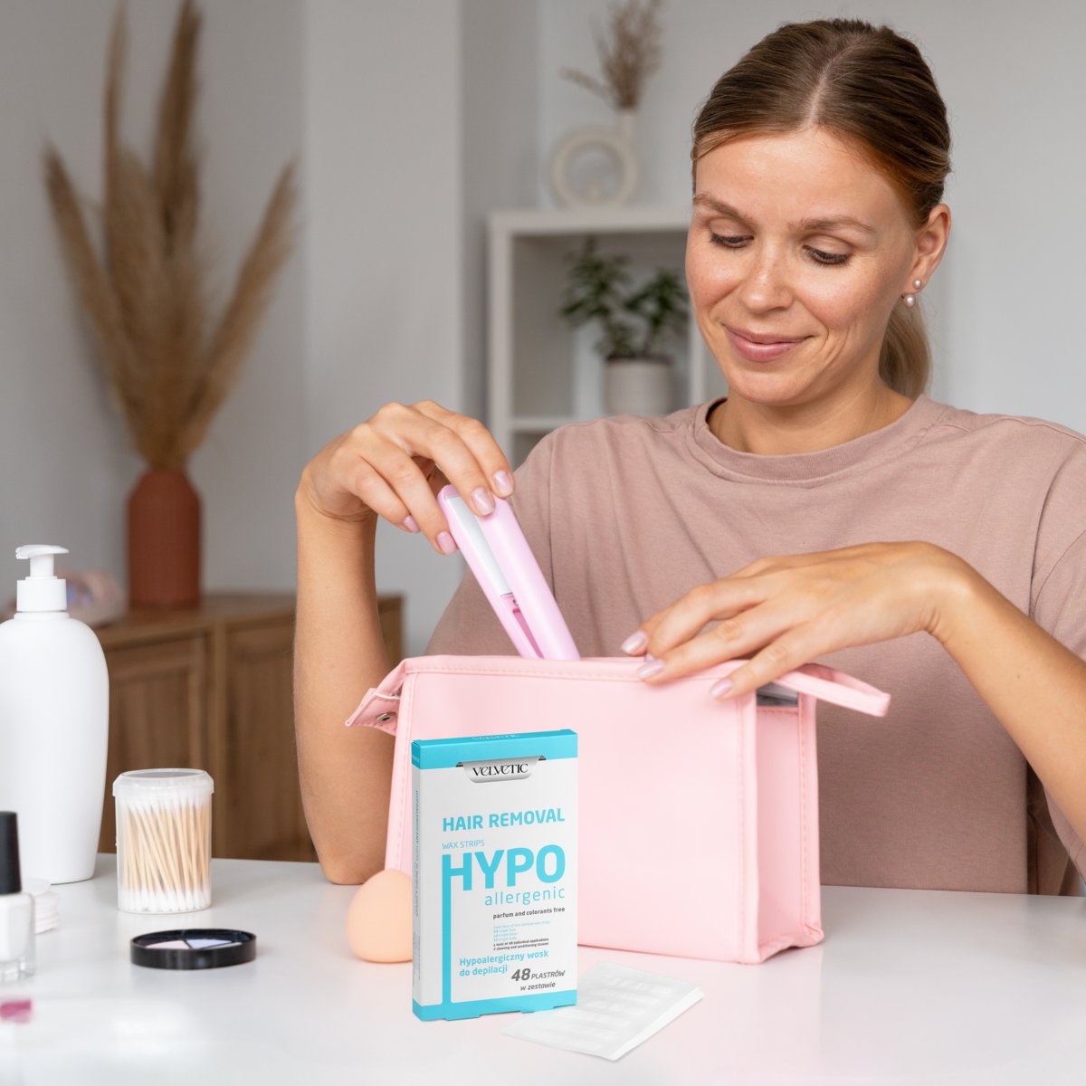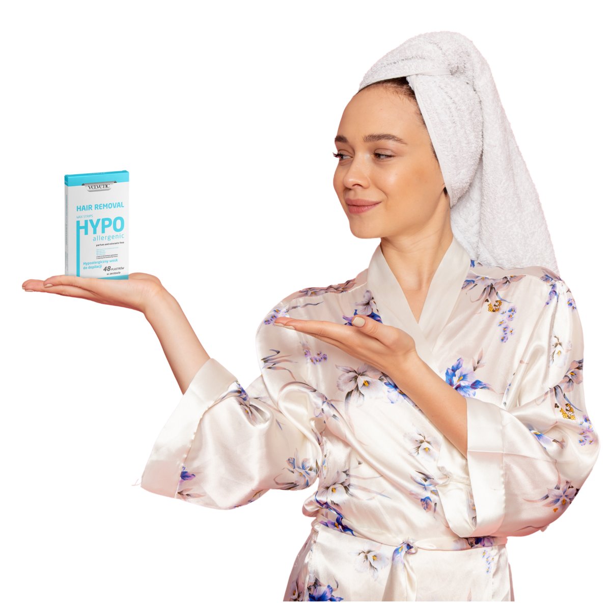 Velvetic to zestaw wygodnych i skutecznych plastrów do depilacji, idealnych do różnych partii ciała — twarzy, bikini, pach, nóg, pleców i klatki piersiowej. Hipoalergiczna formuła bez żywic, zapachów i barwników minimalizuje ryzyko podrażnień, sprawiając, że depilacja staje się komfortowa i szybka. Gładka skóra utrzymuje się nawet do 8 tygodni, a włoski odrastają słabsze i mniej widoczne.