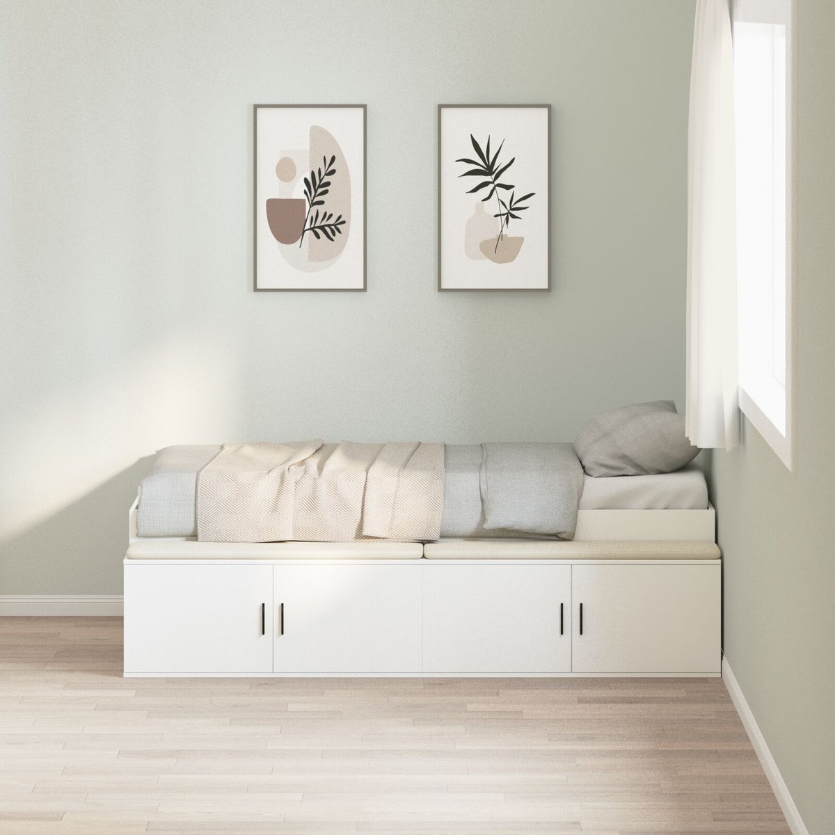 To łóżko z pojemnikiem łączy nowoczesny styl z funkcjonalnością. Jego biały kolor ożywia każdą sypialnię. Wykonane z trwałego materiału drewnopochodnego, zapewnia solidne wsparcie i smart rozwiązanie