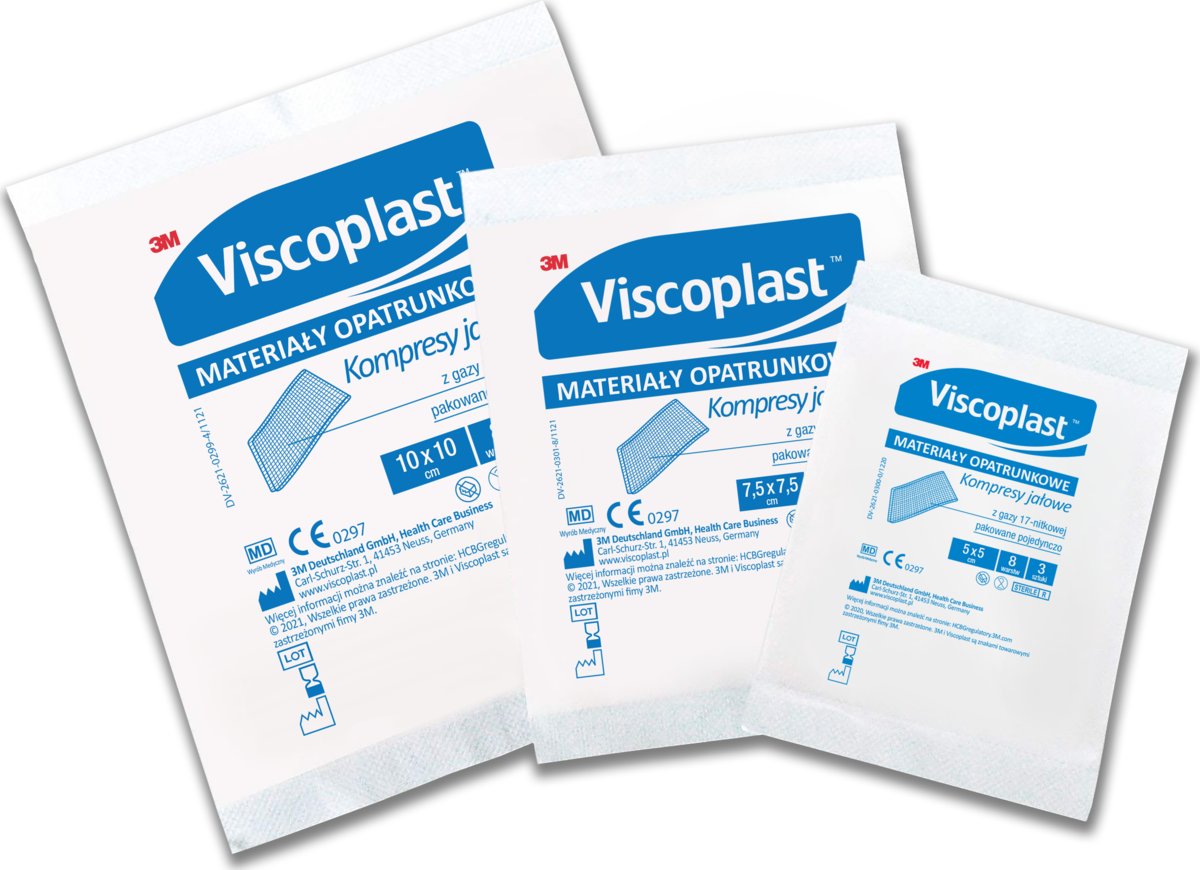 Viscoplast- jałowe kompresy gazowe przeznaczone są do bezpośredniego opatrywania ran będących wynikiem urazów, zabiegów chirurgicznych oraz do innych zabiegów.