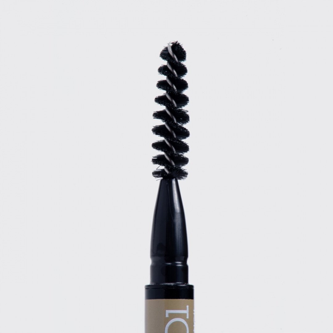 Jedna chwila dzieli Cię od perfekcyjnego makijażu. Produkt ma dwie funkcyjne końcówki. Z jednej strony znajduje się ruchoma głowica z miękkim wysuwanym grafitem, który dokładnie pokrywa włókna kolorem. Niweluje wszelkie prześwity i niedoskonałości. Preparat dobrze rozprowadza się po włoskach i nie tworzy grudek, a po aplikacji nie rozmazuje się i nie kruszy. Drugi koniec wyposażony jest w spiralną szczoteczkę, która pozwala na dokładne rozczesanie kosmyków, a po nałożeniu barwy – jej rozprowadzenie w celu uniknięcia przebarwień.