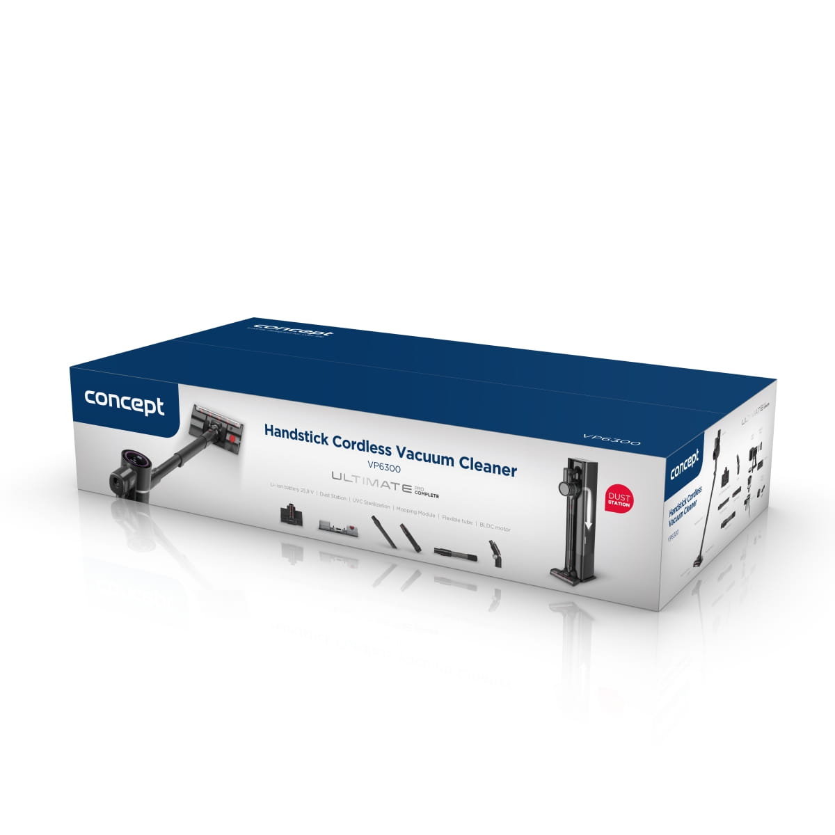 Odkurzacz pionowy 5 w 1 Ultimate Complete Pro 25,9 V Concept VP6300 to najbardziej wszechstronny model, który dopasuje się do potrzeb dosłownie każdego użytkownika. Oferuje szeroką gamę akcesoriów, z których zmontujesz odkurzacz dokładnie według swoich aktualnych potrzeb. Odkurzacz pionowy VP6300 umożliwia odkurzanie, wycieranie i dezynfekcję światłem UVC. Jest odpowiedni dla gospodarstw domowych z dziećmi, zwierzętami i alergików. Z łatwością poradzi sobie z czyszczeniem podłóg, schodów, wnętrz samochodów, miejsc trudno dostępnych oraz obszarów oddalownych od gniazdka elektrycznego.