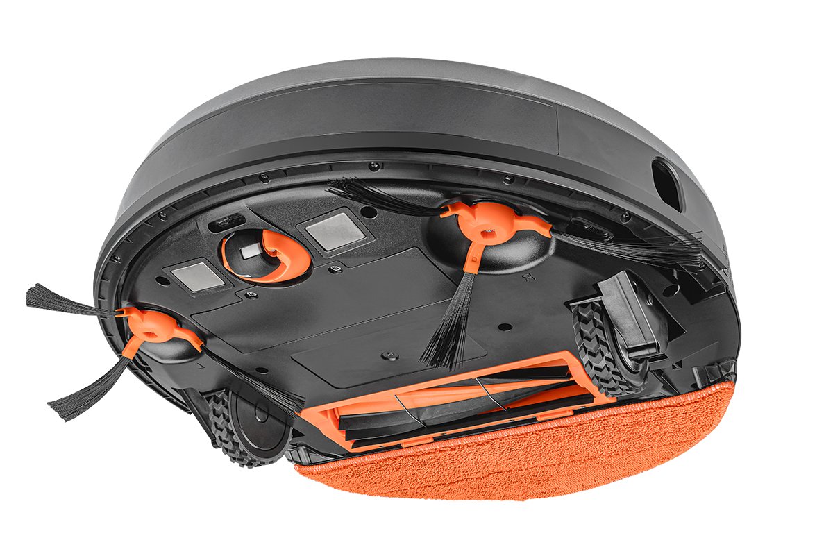 Robot wyposażony jest w dwa zbiorniki, dzięki czemu z łatwością radzi sobie z czyszczeniem na sucho i na mokro. Pierwszy pojemnik o pojemności 600 ml służy do klasycznego czyszczenia chemicznego. Jeśli dołączysz moduł mopujący, możesz jednocześnie odkurzać i mopować. W ten sposób wykonasz dwa czyszczenia w rekordowym czasie. W szufladzie mopa znajduje się ściereczka z mikrofibry, która wiąże brud, a także nabłyszcza podłogę podczas czyszczenia. Tkaninę można łatwo zdjąć i wyprać w pralce.