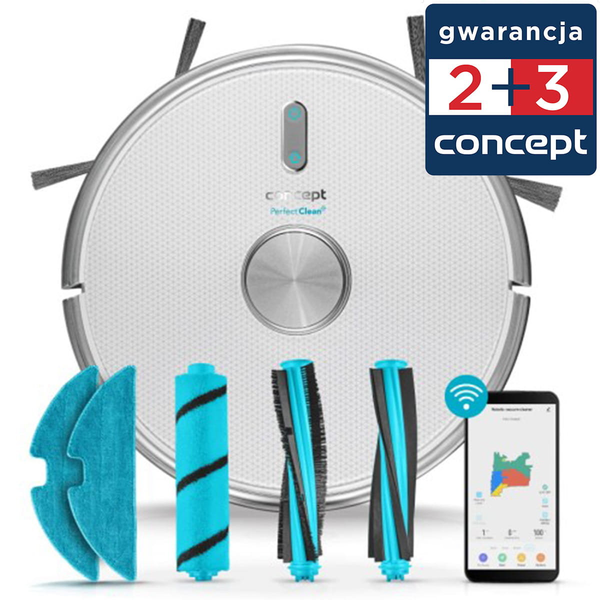 Odkurzacz automatyczny z mopem Laser 2 w 1 Concept VR3125 Perfect Clean EXTRA wydajność Odkurza i wyciera ROOMPLAN Nawigacja laserowa z precyzyjną orientacją zapewniającą