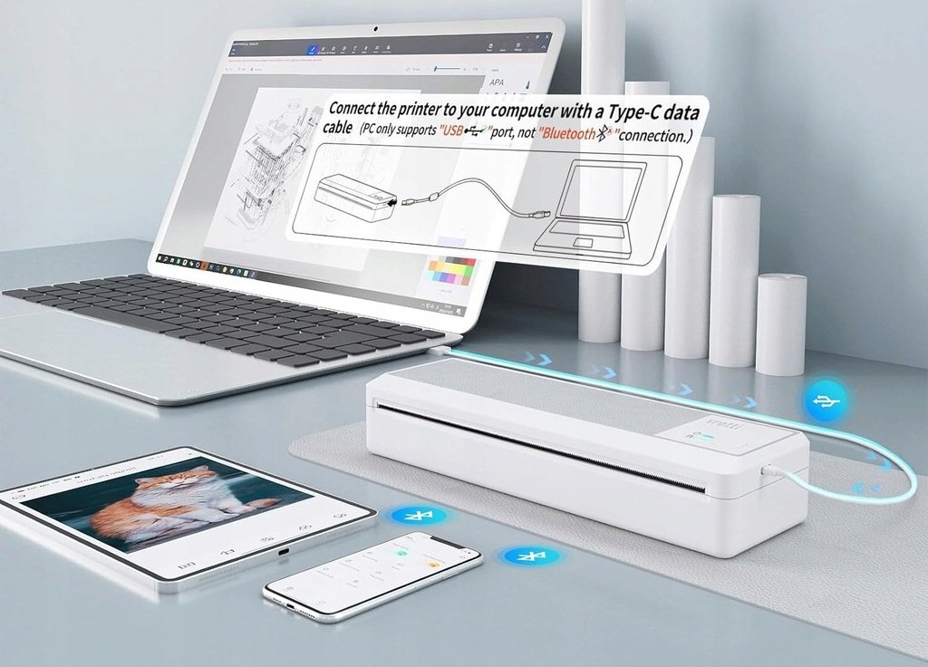 - Długa praca na baterii – Wbudowana bateria 2600 mAh umożliwia drukowanie przez cały dzień bez konieczności częstego ładowania.
