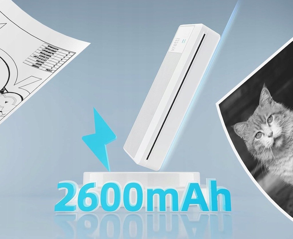 | Nazwa: | VRETTI P83 Przenośna Drukarka Termiczna A4 304DPI Android/iOS 2600mAh BT |