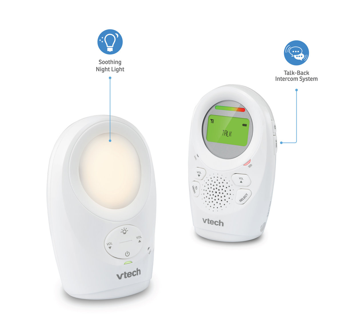 cyfrowa niania funkcja lampki nocnej zestaw uspokajających kołysanek dwukierunkowa komunikacja TALK - BACK zwiększony zasięg dzięki doskonałej cyfrowej transmisji zestaw składający się z ...