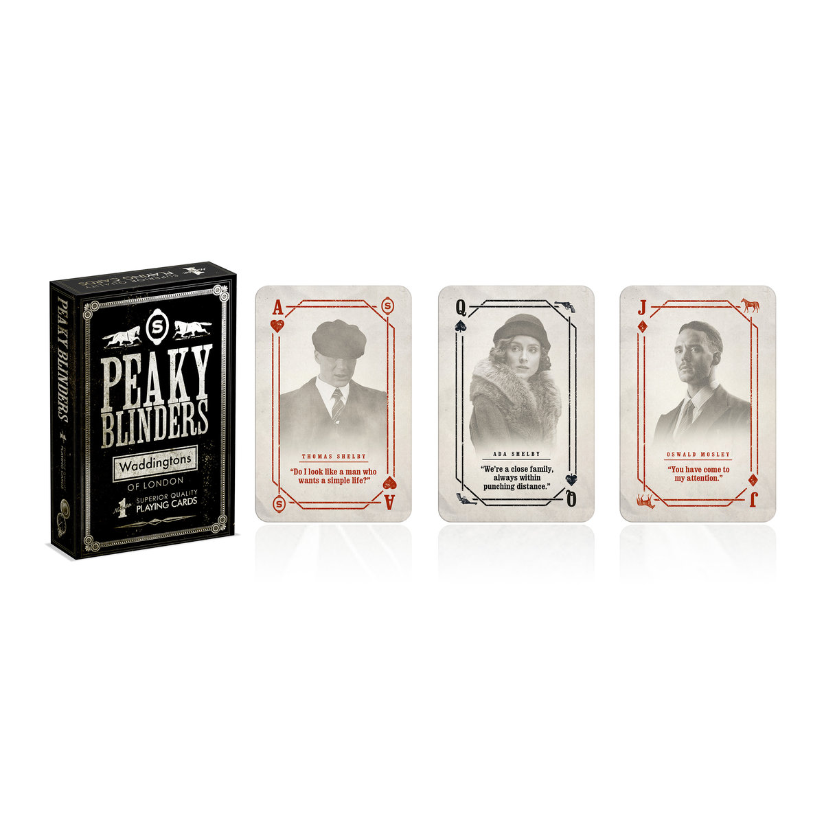 Wyjątkowa talia kart do gry WADDINGTONS NO. 1 z motywem serialu Peaky Blinders. Najwyższa jakość gwarantuje brytyjska marka Waddingtons, obecna na rynku od 1905 roku. Graj w najlepszym możliwym stylu i wybierz jedną z licencjonowanych talii kart.