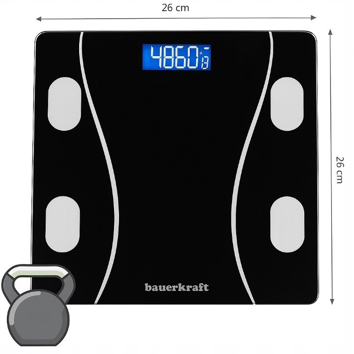 Technologia smart wagi pozwala nie tylko śledzić wagę ciała, ale także analizować skład ciała – masę mięśniową, tkankę tłuszczową, wodę w organizmie, BMI czy nawet wiek biologiczny. Dzięki temu możesz na bieżąco kontrolować swoje postępy i dopasowywać trening oraz dietę do realnych wyników. Waga sama włącza się, gdy na nią wchodzisz, a funkcja oszczędzania energii zapewnia długą żywotność baterii.