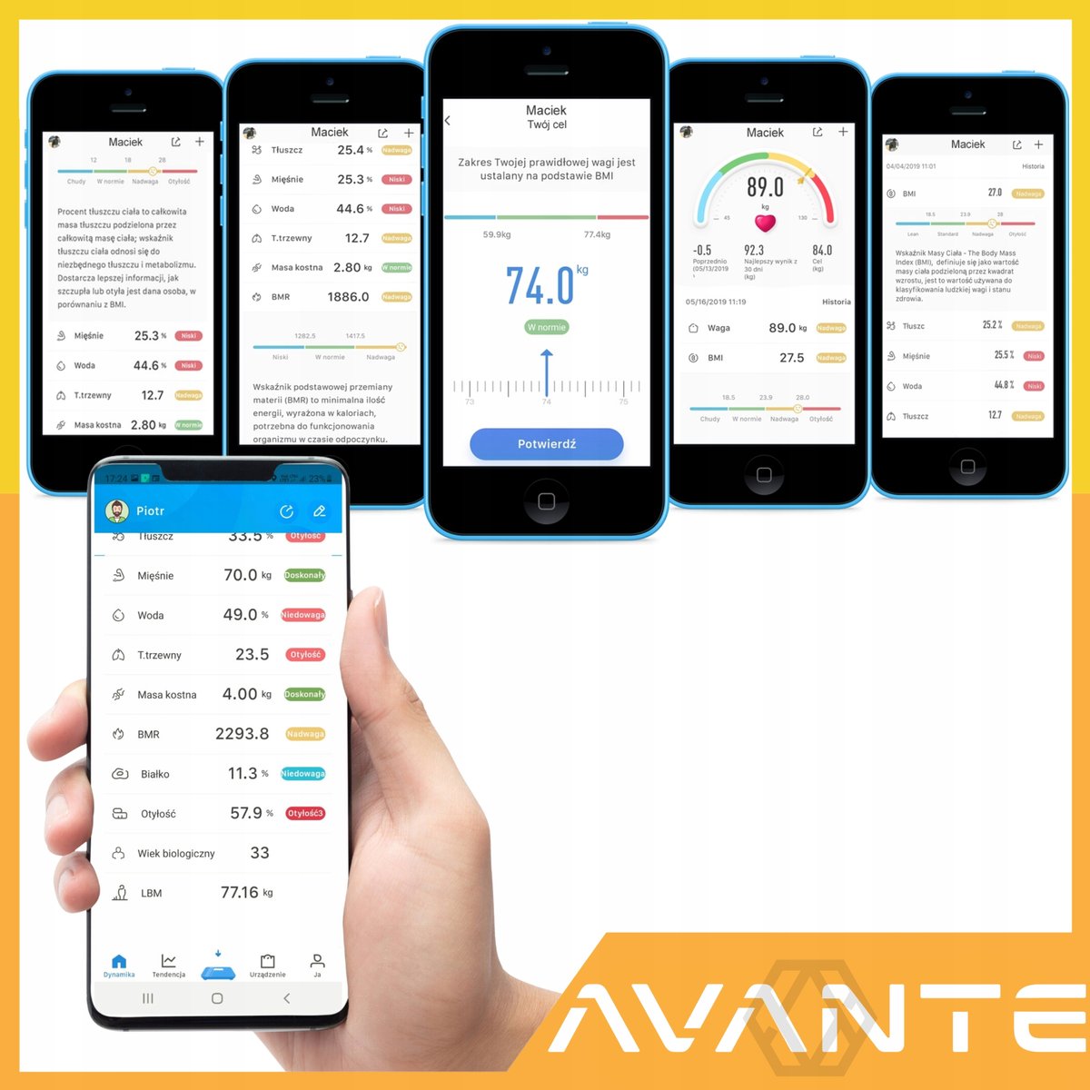 ✅ Zaawansowana analiza składu ciała – mierzy m.in. wagę, BMI, zawartość tłuszczu, wody i masy mięśniowej.