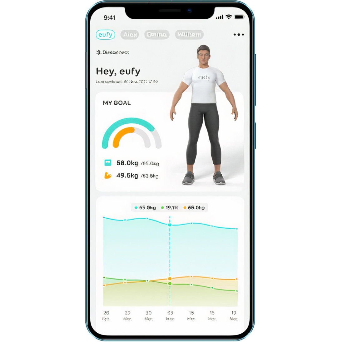 Waga automatycznie rozpoznaje do 8 użytkowników natychmiast po wejściu na platformę, bez konieczności ręcznego przestawiania użytkownika, o ile waga tych użytkowników różni się od siebie o co najmniej 2kg.