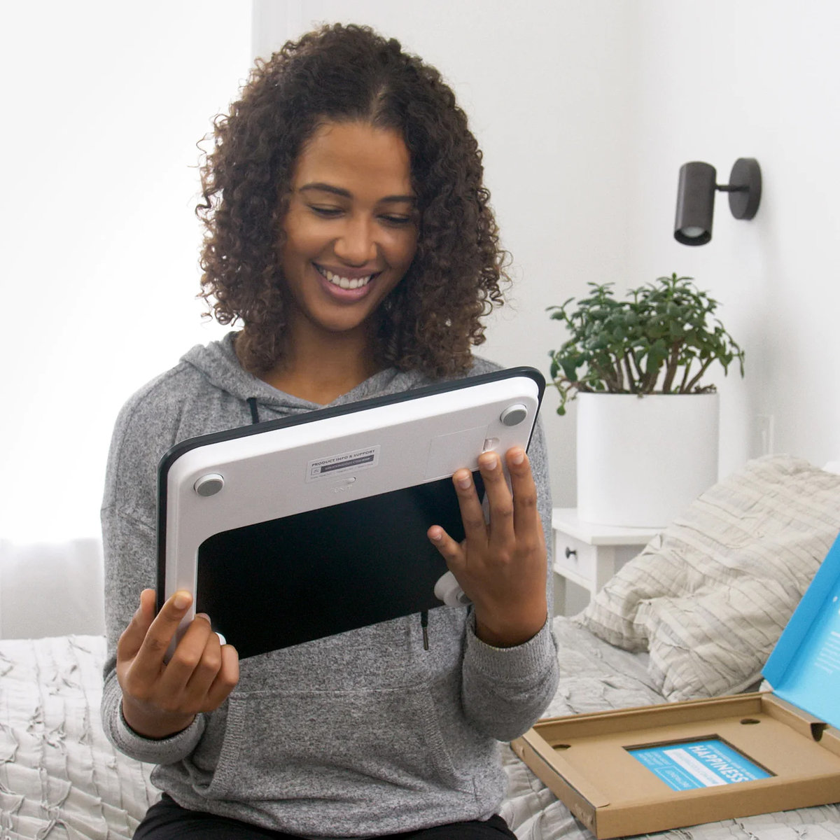 Staranne wykończenie szklanej platformy w wersji Slim sprawia, że waga doskonale wpisze się we wnętrze Twojej łazienki, pozwalając zachować spójność wystroju. Płyta inteligentnej wagi łazienkowej została wykonana ze szkła hartowanego o grubości 4 mm, dzięki czemu waga wytrzymuje obciążenie aż do 180 kg. Antypoślizgowe nóżki, wykonane z polistyrenu, termoplastycznego materiału zapewnią komfort w trakcie dokonywania pomiaru oraz stabilność urządzenia i zapobiegną jego ślizganiu się po powierzchni podłoża, dając tym samym poczucie bezpieczeństwa.
