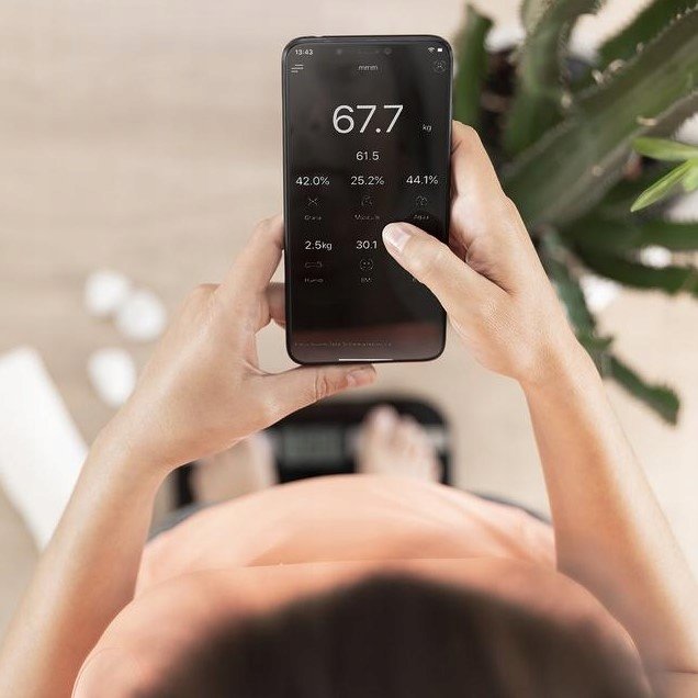 Surface Precision EcoPower 10200 Smart Healthy czarna. Waga łazienkowa z przyciskiem, powierzchnia ze szkła hartowanego o wysokim stopniu bezpieczeństwa, precyzyjne czujniki, aplikacja. Ładowalna cyfrowa waga łazienkowa o wysokiej precyzji