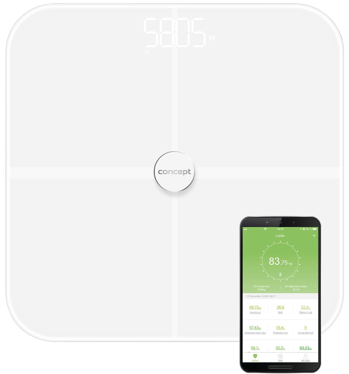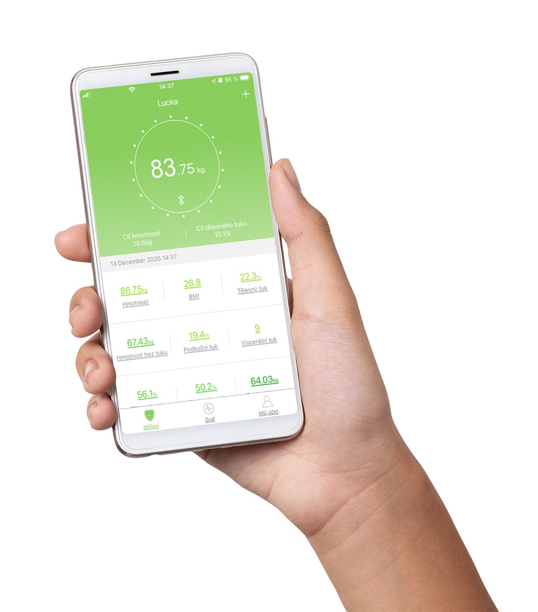 Wyniki swojego ważenia oraz innych pomiarów możesz wyświetlać i zapisywać na smartfonie. To praktyczny sposób, dzięki któremu informacje o formie fizycznej będą łatwo dostępne oraz uporządkowane. Aby aktywować tę funkcję wystarczy połączyć się z Wi-Fi lub Bluetooth, a następnie pobrać dedykowaną aplikację i sparować urządzenia.