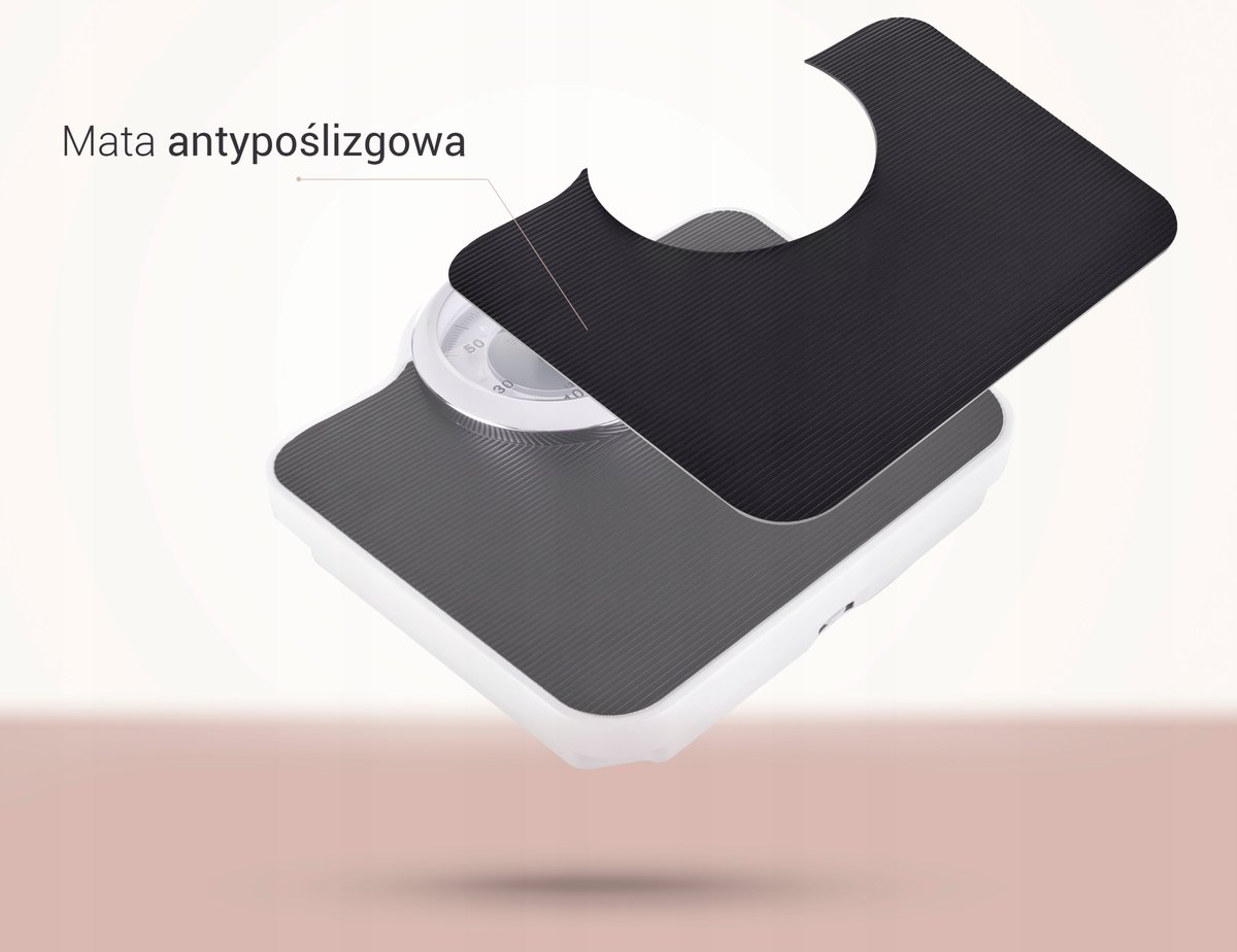 Od góry została zainstalowana mata antypoślizgowa, która zabezpieczy przed poślizgnięciem się nawet gdy masz mokre stopy.