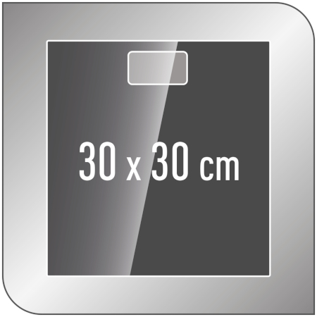 Wytrzymała platforma o wymiarach 30x30 cm posiada warstwę z hartowanego szkła, które łatwo utrzymać w czystości.