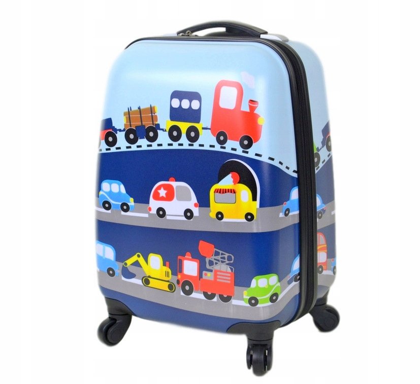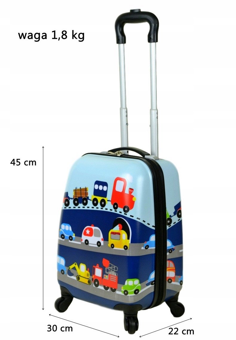 WALIZKA DLA CHŁOPCA NA KÓŁKACH CHŁOPIĘCA KOLOROWA MAŁA KABINOWA TWARDA 24L Model autka