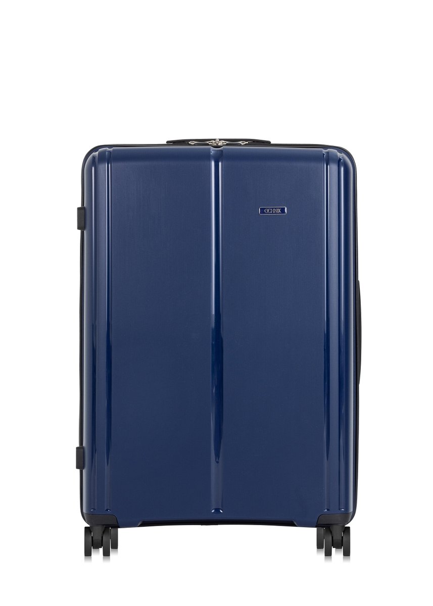 Duża walizka wykonana z bardzo lekkiego, sztywnego i odpornego na zarysowania materiału PP (polipropylen). Dobry materiał dla osób, często podróżujących samolotem. Wewnątrz komora podzielona na dwie części, w jednej przestrzeń zamykana materiałem na suwak, w drugiej - elastycznymi pasami zabezpieczającymi. Kółka podwójne, wykonane z mieszanki kauczuku i gumy, łożyskowane, obrót 360 stopni.