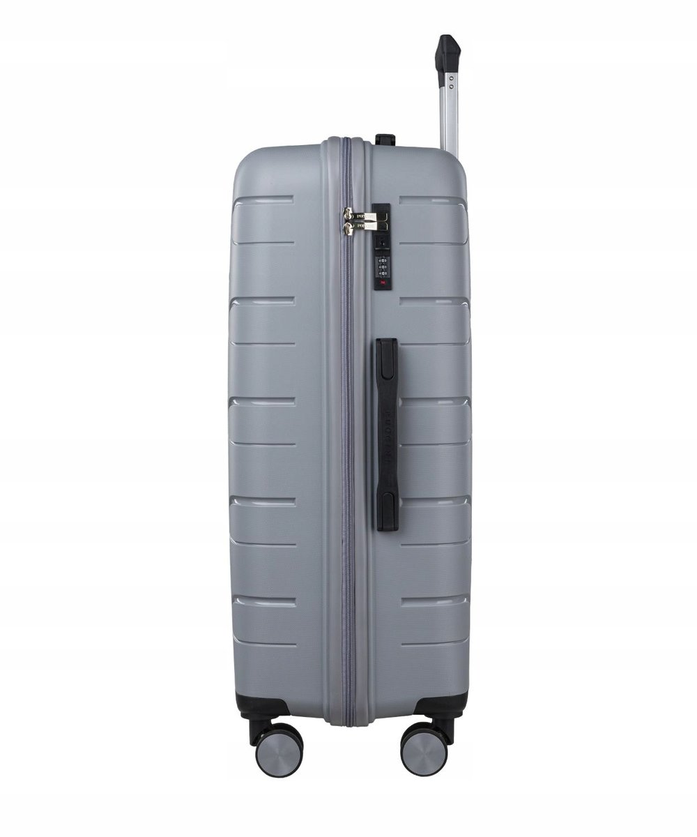 ➡️ Elegancki design niezmiennie zachwyca miłośników podróży. Na froncie każdej walizki widnieje oryginalny napis z naszym logo, a efektowne żłobienia dodają jej nowoczesnego charakteru. Dzięki wygodnym uchwytom umieszczonym zarówno z boku, jak i u góry, oraz regulowanemu stelażowi, możesz łatwo dostosować walizkę do swoich potrzeb.