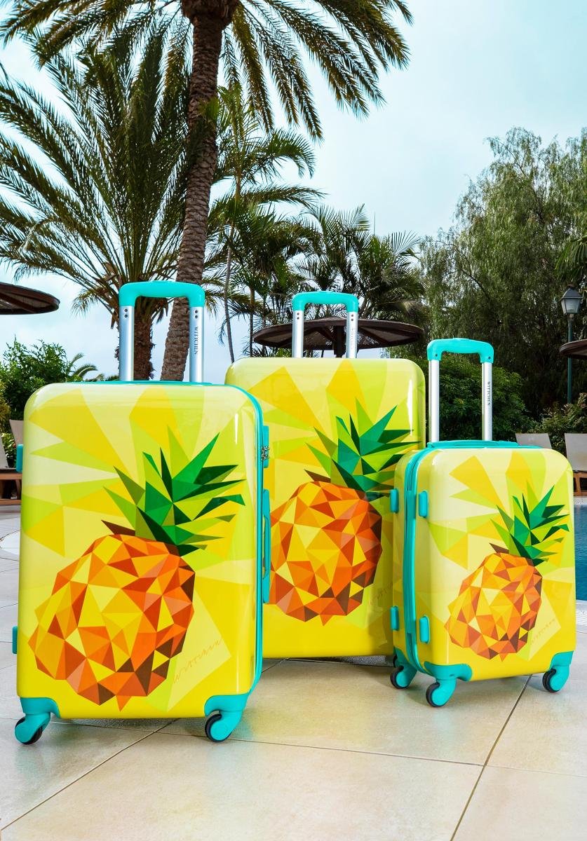 Walizki dodatkowo pokryte są transparentną folią ochronną, którą można usunąć.Podane wymiary obejmują również elementy wystające, takie jak rączki czy kółka. Wymiary są przybliżone i mogą się różnić +/- 5%.