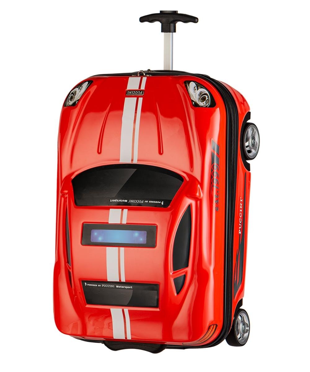 Walizka dziecięca Puccini z kolekcji Dakar to produkt, który z pewnością przypadnie do gustu każdego malucha. Idealnie sprawdzi się jako prezent, dziecięcy bagaż na wycieczki oraz wyjazdy urlopowe. Funkcjonalny model może również stanowić ciekawe akcesorium do przechowywania zabawek, przy czym ozdobi dziecięcy pokój.Walizka Dakar urozmaici każdą podróż. Dziecko może usiąść na dachu samochodu i samodzielnie jeździć odpychając się. Gdy maluch będzie zmęczony podróżą może odpocząć siadając na walizce i dzięki dopinanemu paskowi być ciągniętym przez rodzica.Gdy nie korzystamy z funkcji jeździka, wystarczy wyciągnąć teleskopową rączkę i mamy do dyspozycji walizkę na kółkach.Walizka-samochód wykonana jest z trwałego i sztywnego materiału ABS pokrytego warstwą PC. Dzięki tej warstwie, powierzchnia jest bardziej odporna na zarysowania. Walizka występuje w 5 kolorach, dodatkowo do każdego z nich dołączane są dwa zestawy naklejek* do samodzielnego ozdobienia.Główna komora podzielona jest na dwie części. Pierwsza część posiada regulowane pasy, uniemożliwiające przesuwanie się ubrań. Druga połowa zapinana jest przezroczystą klapą na zamek, dzięki czemu rzeczy dziecka pozostają na swoim miejscu. Dzięki czterem łożyskowanym kółkom