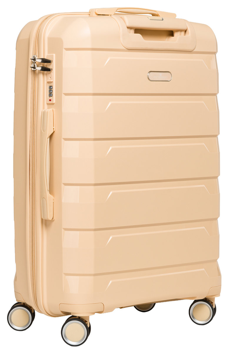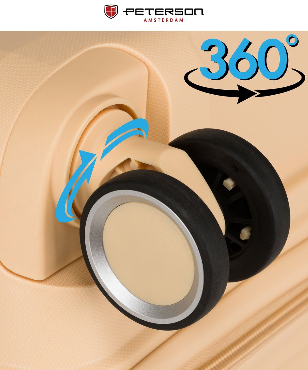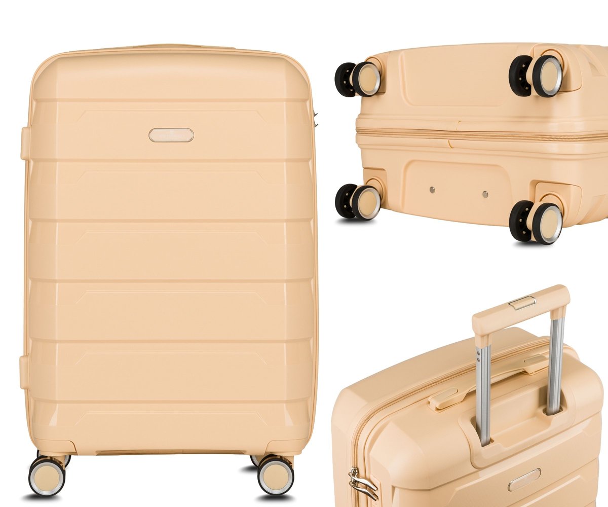 Właśnie zrecenzowałem Walizka podróżna bagaż mocna twarda S mała kabinowa polipropylen na kółkach Peterson 4 kółka beżowa