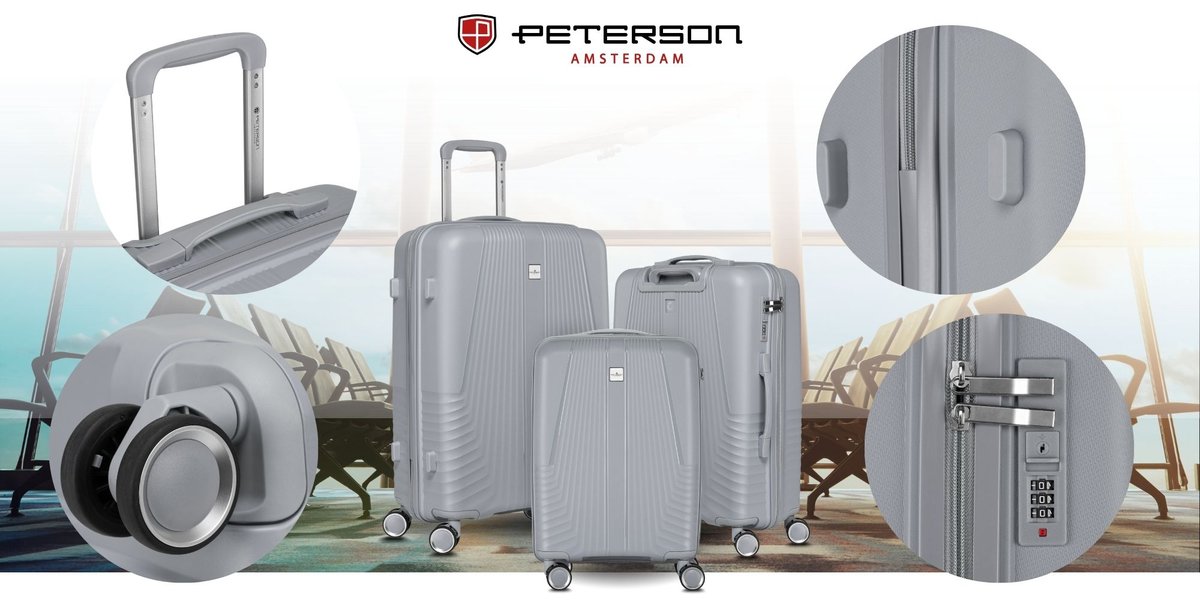 Peterson®️ to coś więcej niż walizki – to pełna kolekcja akcesoriów podróżnych, stworzona z myślą o komforcie i stylu w drodze. Wybierz nie tylko walizkę, ale i dopasowane plecaki kabinowe, torby podróżne oraz kosmetyczki.