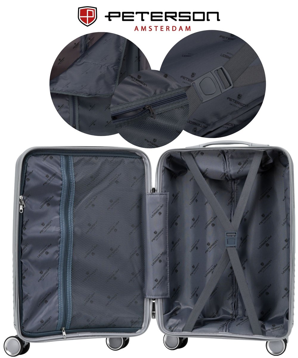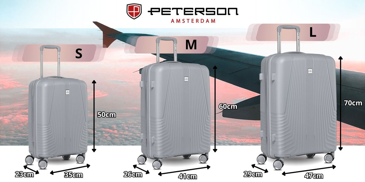 Peterson®️ to coś więcej niż walizki – to pełna kolekcja akcesoriów podróżnych, stworzona z myślą o komforcie i stylu w drodze. Wybierz nie tylko walizkę, ale i dopasowane plecaki kabinowe, torby podróżne oraz kosmetyczki.