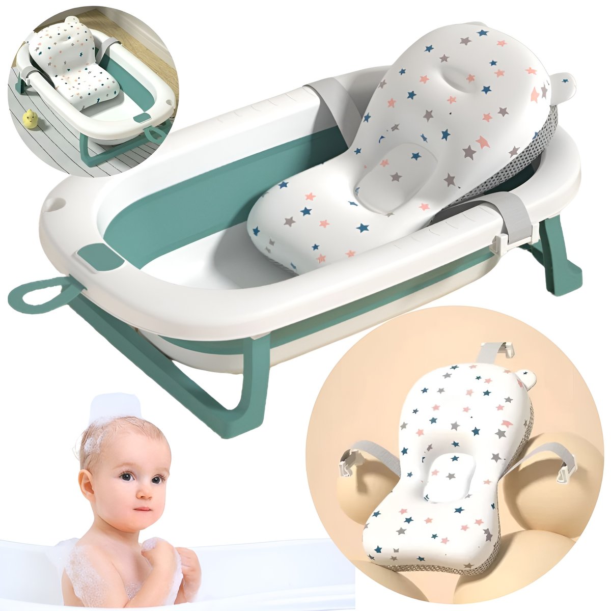 Wanienka do Kąpieli z Poduszką dla Niemowląt Składana Antypoślizgowa 0 + ⭐Cechy produktu:Składana konstrukcja – wanienka jest ...