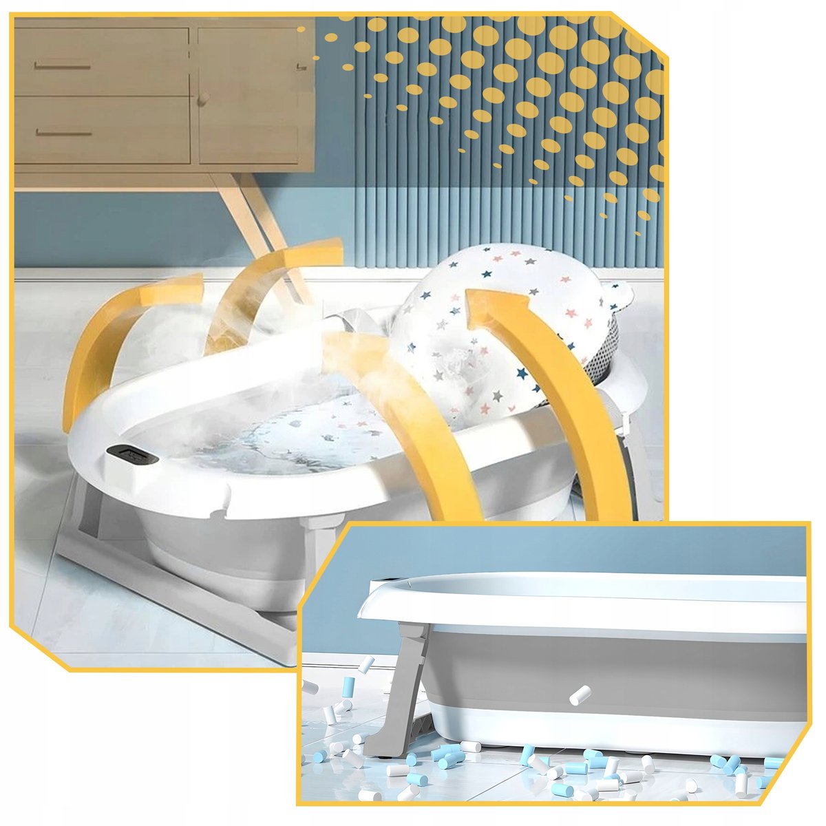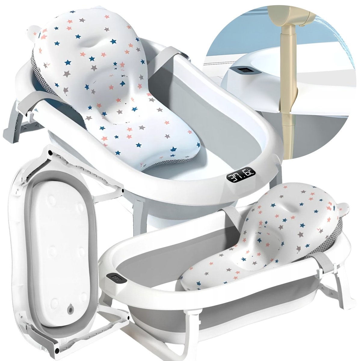 Wanienka składana dla dzieci silikonowa z termometrem dziecięca z poduszką