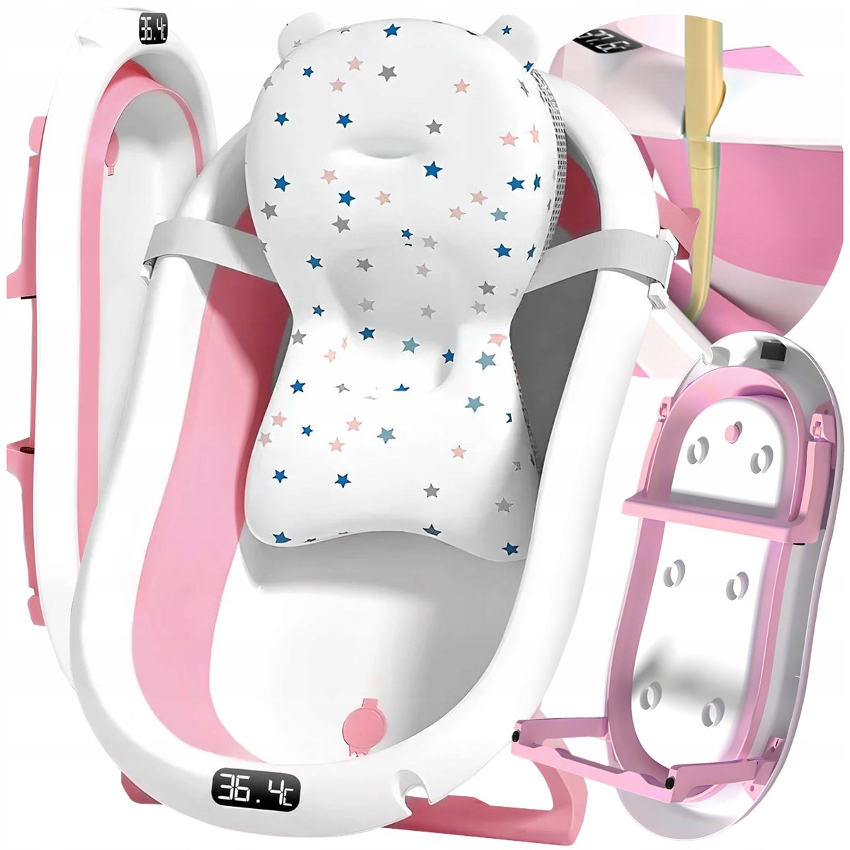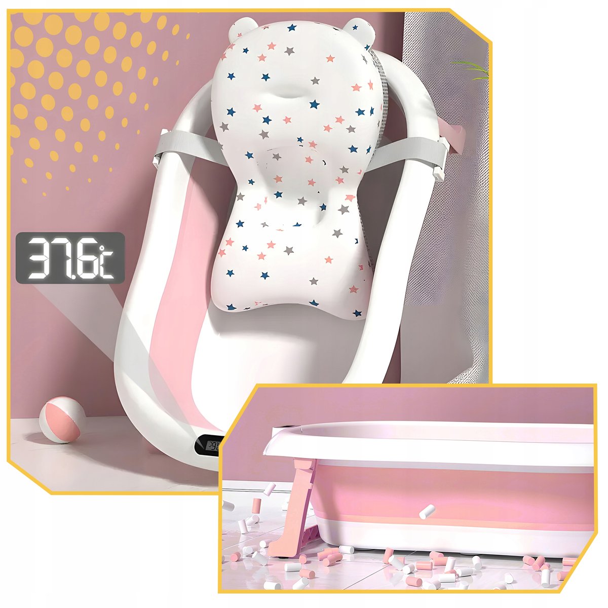 Wanienka Składana dla Dzieci Silikonowa z Termometrem Dziecięca z Poduszką