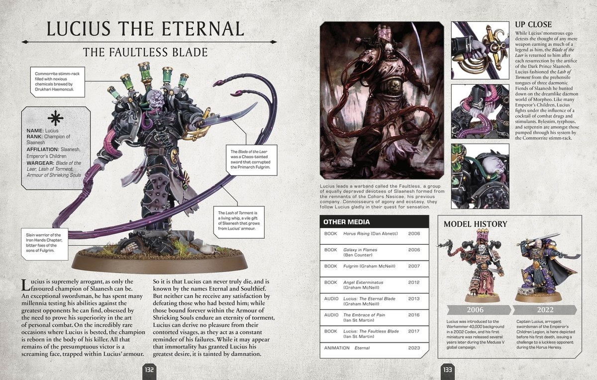 Featuring more than 120 characters from the 41st Millennium, this character encyclopedia is a perfect introduction to the iconic heroes and villains of Warhammer 40,000. Each page showcases stunning photography of Games Workshop miniatures, epic artwork, and vital stats and facts on each character.