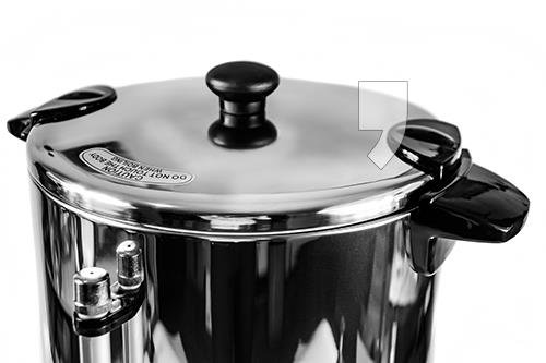 Wyposażenie firm przygotowujących eventyWykonany ze stali nierdzewnej pozwala zarówno na podgrzewanie wody, jak i utrzymywanie jej temperatury. Niezastąpiony w czasie konferencji do organizacji przerw kawowych, a także przy różnego rodzaju spotkaniach rodzinnych, biznesowych, naukowych i towarzyskich.Dzięki swojej mobilności doskonale sprawdza się jako wyposażenie firm przygotowujących eventy. Naniesiona na wodowskazie skala obrazująca orientacyjnie ilość filiżanek ułatwia obsługę spotkań. Dysponując mocą 1650W oraz pojemnością 20 L umożliwia serwowanie wrzątku na aż 150 filiżanek gorących napojów. |