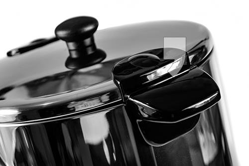 Bardzo solidne, pewne i wygodne uchwytyWarnik CR 1259 jest wyposażony w bardzo solidne, pewne i wygodne uchwyty. Wyważone wyprofilowane rączki sprawiają, że wypełniony wodą trzyma się wygodnie i stabilnie. Stalowa wypukła pokrywka jest dopasowana do wyglądu obudowy. Pokrywkę otwiera się poprzez przekręcenie w lewo i podniesienie. Można ją odłożyć obok. Po założeniu przekręcamy w prawo i wtedy nie można jej podnieść. Zapobiega to przypadkowemu rozszczelnieniu, zapewniając bezpieczeństwo użytkowania. |