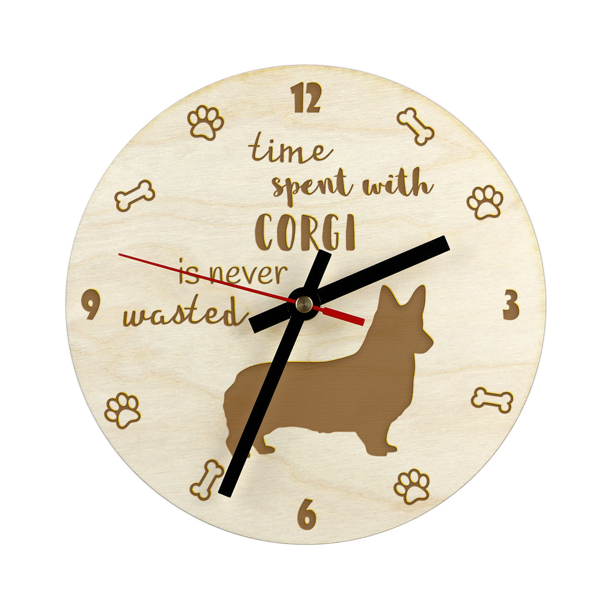 Welsh Corgi - zegar z psem, drewniany zegar z grawerem, personalizowany zegar marki Art-Dog