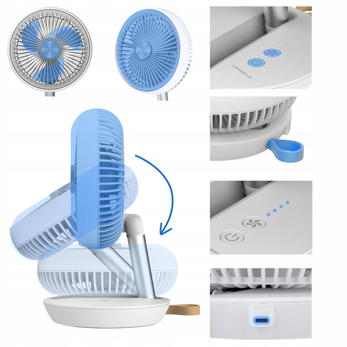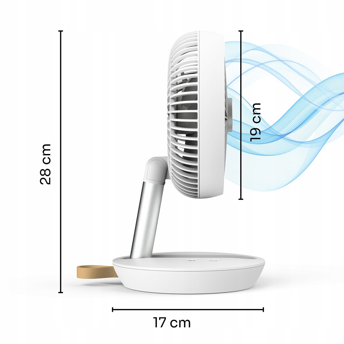 180° obracana głowica umożliwiają precyzyjne ustawienie kierunku nawiewu – do pracy, do snu, do odpoczynku. Dodatkowo składana konstrukcja pozwala ustawić urządzenie w różnych konfiguracjach – nisko na stole, wyżej na półce, a nawet w zawieszeniu.