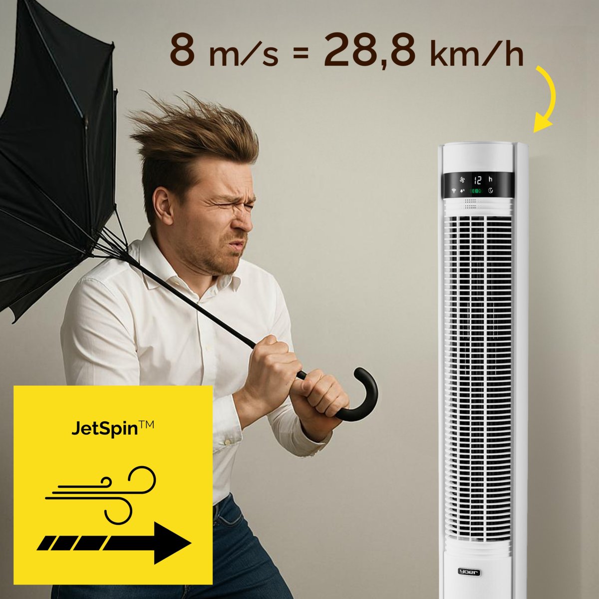 ⭐ Technologia JetSpin™ - 8m/s - prędkość powietrza, która "łamie" parasole