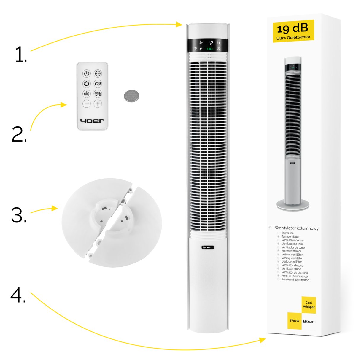 Właśnie zrecenzowałem Wentylator kolumnowy stojący Cichy 19dB Yoer +12m zasięg 12 mocy +Jonizacja