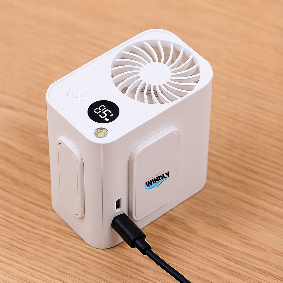 Tak, wiatrak może działać podczas ładowania – wygodnie i bezpiecznie.
