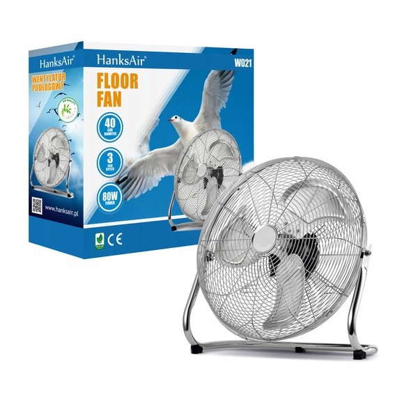 CICHY MOCNY WENTYLATOR WIATRAK PODŁOGOWY BIURO DOM Wentylator podłogowy Producent: HANKSAIR Model: W021 Cechy: Moc 76,5W Średnica 40 cm 3 prędkości wentylacji Poziom hałasu ~60 ...
