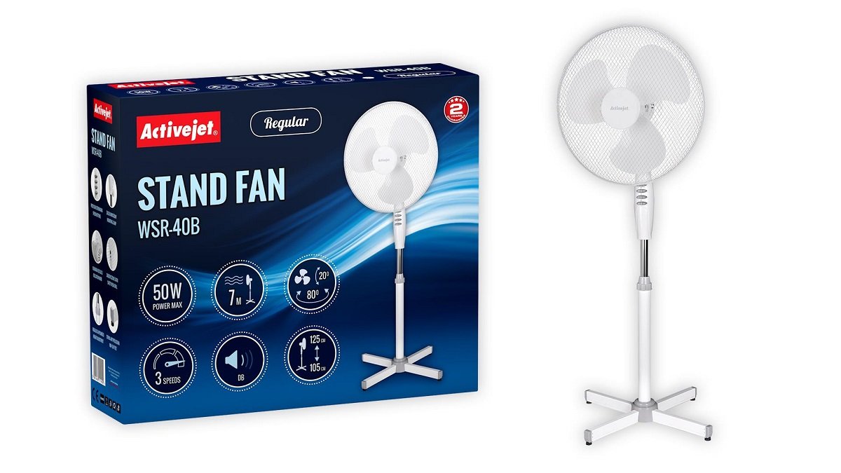 W czasie trudnych do zniesienia upałów, urządzenia zdolne obniżyć temperaturę naszej skóry znacznie zyskują na wartości. Bardzo popularnym środkiem zaradczym na problem zbyt wysokich temperatur jest użycie prostych w obsłudze wentylatorów. ACTIVEJET Regular WSR-40B posiadający moc stojący wygeneruje przynoszący ulgę i odprężenie powiew chłodnego powietrza.