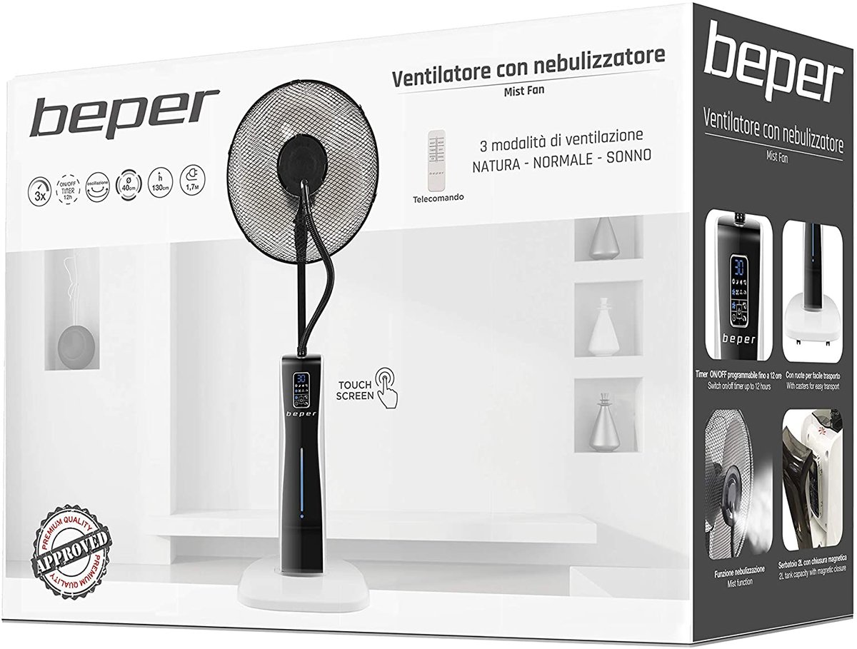 Wentylator podłogowy Beper VE.510 Wentylator o nowoczesnym i praktycznym designie. Dzięki funkcji spryskiwania i 3 trybom pracy wentylator jest idealny do zapewnienia świeżości. Dzięki zegarowi