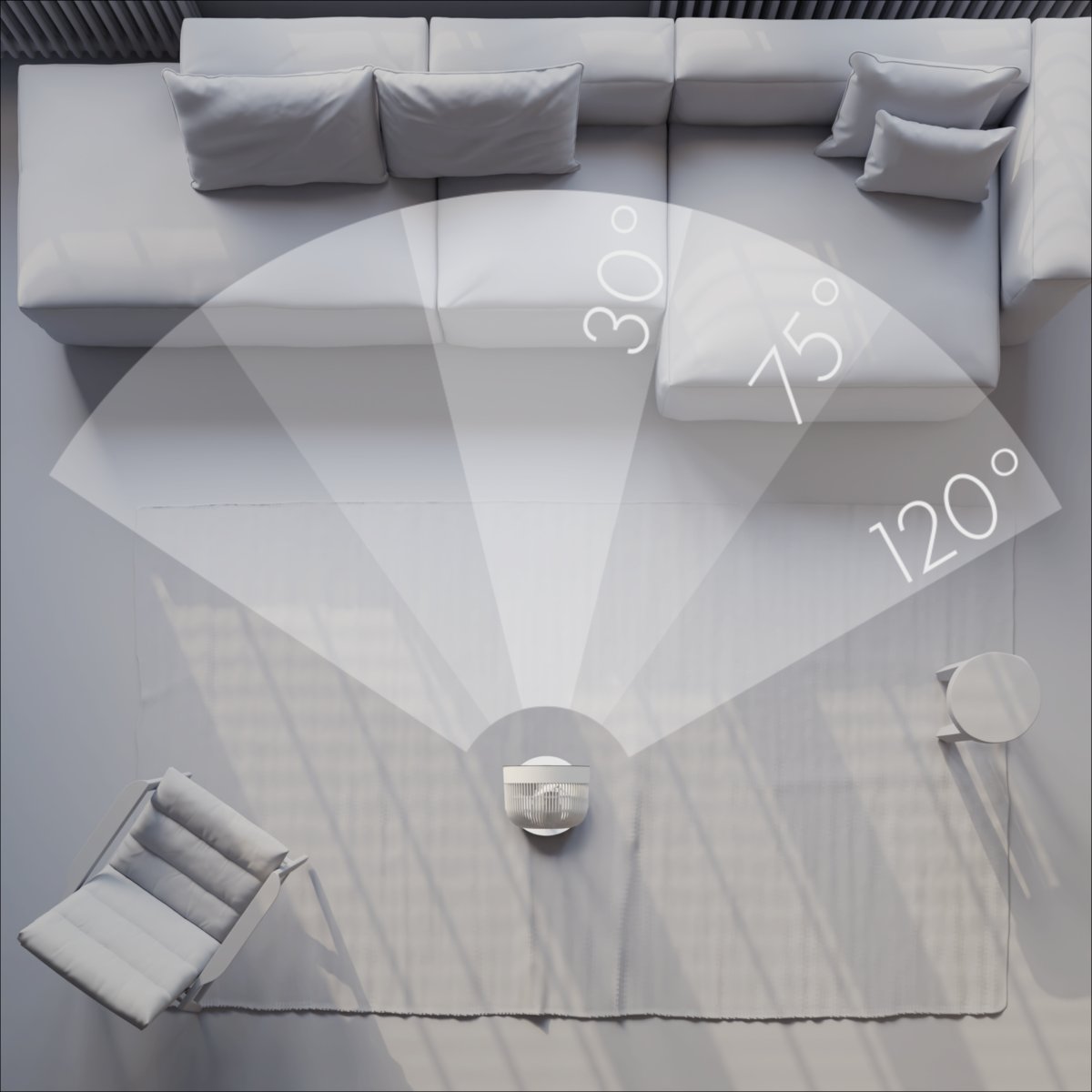 Air Beam Precision, opcja oscylacji urządzenia, daje możliwość ukierunkowania chłodzenia. Dzięki temu masz pełną władzę nad przepływem powietrza, niezależnie od pory dnia.