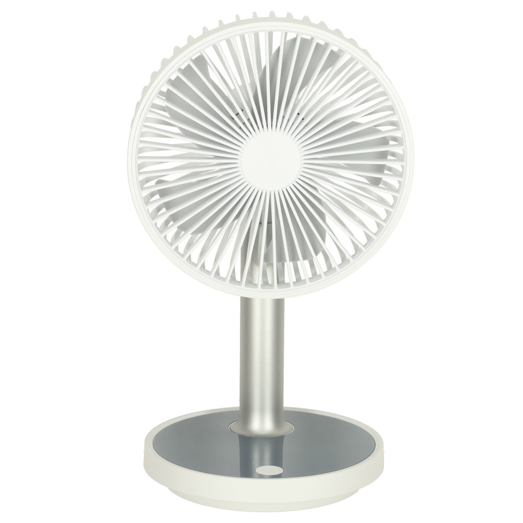 Wentylator wiatrak biurkowy bezprzewodowy 30cm biały Parametry techniczne: Tworzywo: ABS, PP, PMMA Kolor: biały Moc: 9 V Napięcie wejściowe: 5 V 2000 mAh