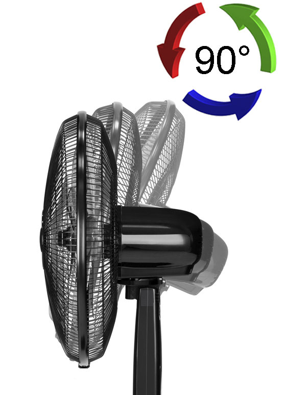 Dzięki oscylacji powietrza z kątem obrotu 90° wentylator obraca się na boki, chłodząc równomiernie całe pomieszczenie. Funkcję oscylacji możesz włączyć za pomocą pilota lub z panelu sterującego