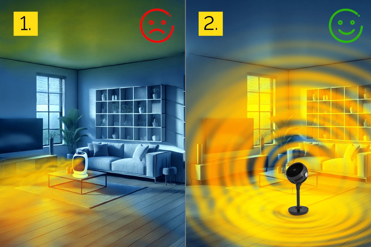 ✅ 10 m zasięgu - nawiew poczujesz z końca dużego salonu